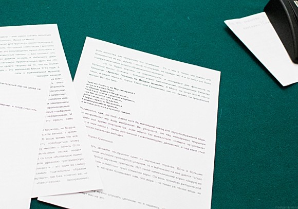 Дело в том, что Бах мыслил свою органную Мессу не линейно, а в нескольких измерениях сразу. То есть он как бы вышел из нашего трёхмерного мира в какое-то иное математическое пространство, где измерений пять или восемь, своеобразный «5D» того времени, и там расположил это своё произведение. И четыре дуэта занимают здесь своё место: они отмечают грани формы. Как бриллиант стачивается ювелиром на углах, и эти грани сверкают наиболее ярко – так и тут Бах отмечает грани нелинейной формы. Но как это всё исполнить – Бах же не оставил никаких указаний? Это нам, людям линейного времени, так кажется. На самом деле в музыке всё заложено. Бах тут приглашает своего слушателя и исполнителя (в те времена это совпадало) к сотворчеству, и в математических пропорциях музыки, а нередко и в нотно-числовых шифрах, которые содержатся в его рукописях, даёт указание на то, где и как ставить эти вольно расположенные номера. Например, он отсылает нас к пропорциям того или иного собора, о которых говорится, скажем, в определённой книге; а уже глядя на этот собор, мы понимаем, куда какой хорал поместить. Это совершенно непостижимое, виртуозное и, конечно же, крайне, редельно сложное искусство. Так Бах поступал не только в Органной Мессе; так же построены и его «Музыкальное приношение», и последнее его произведение, к сожалению, незаконченное – «Искусство фуги»: там тоже есть четыре неизвестно куда становящихся канона…